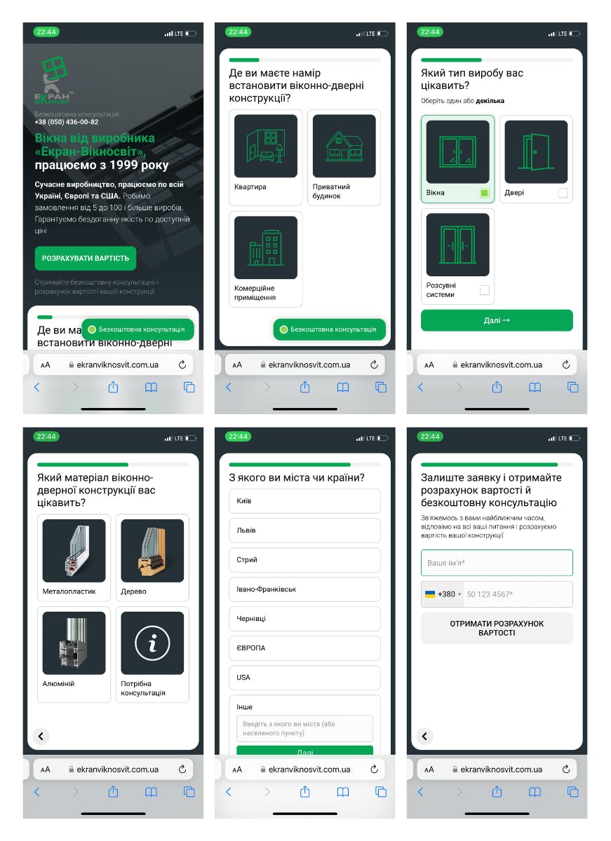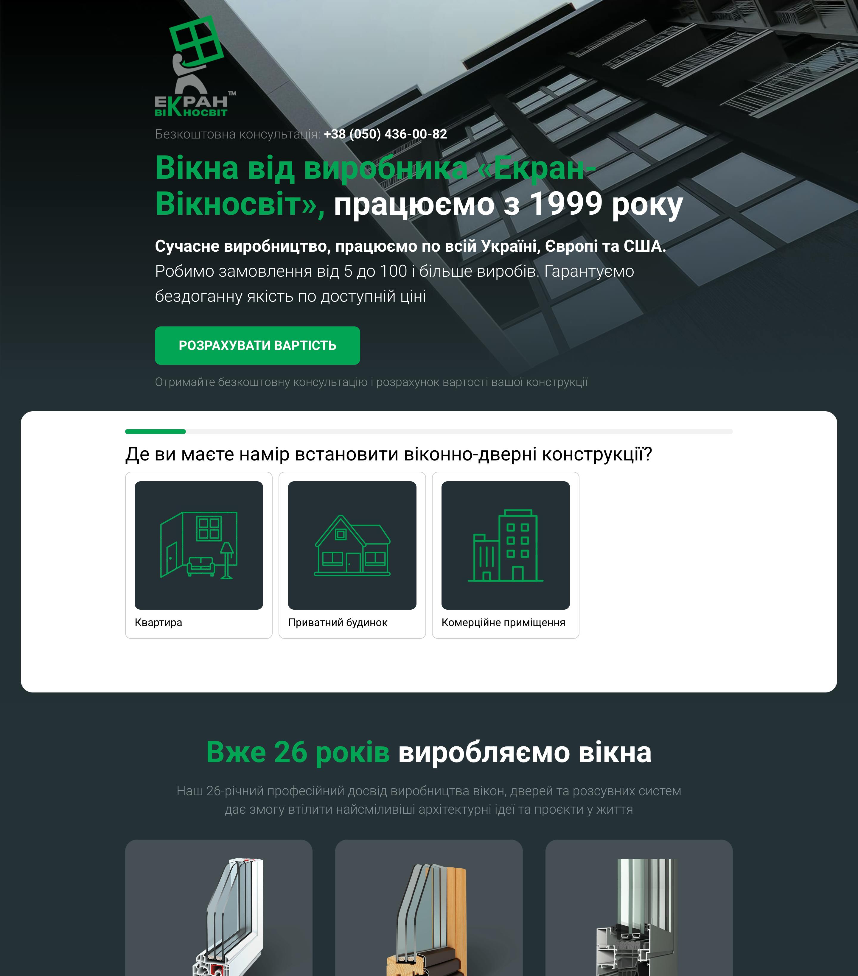 Скріншот лендінг-квіза Екран-Вікносвіт