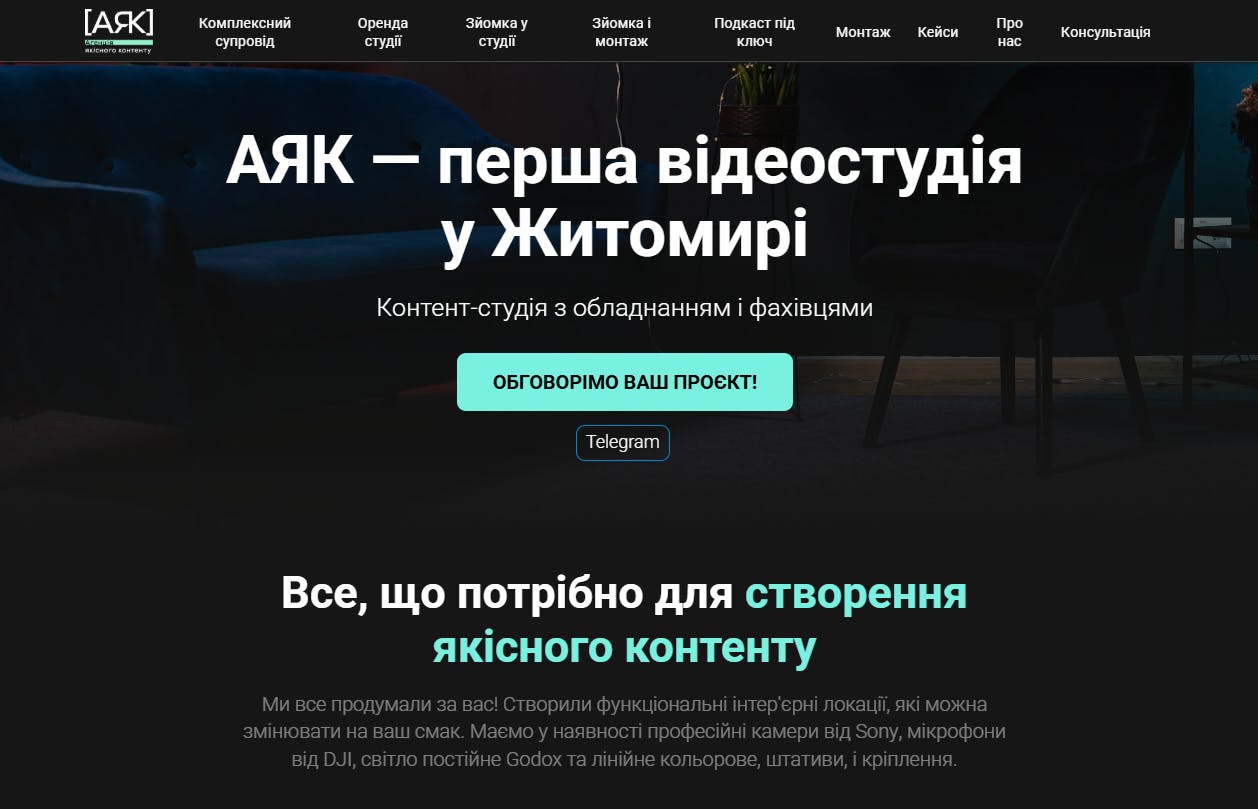 Скрін першого екрану лендинга ajak-agency.com (десктопна версія)