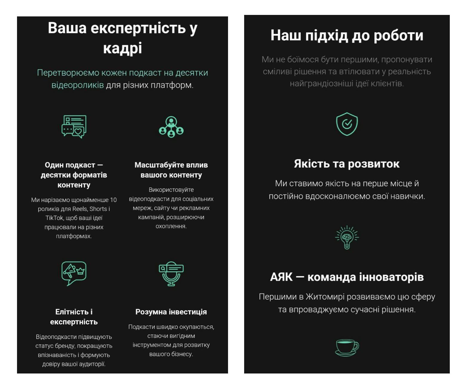 Скріни блоків з іконками для ajak-agency.com (мобільна версія)