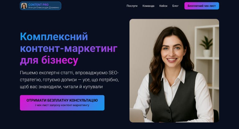 Лендінг або сайт для контент-агенції або бізнесу сфери послуг👀 Подивитись шаблон