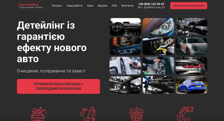 Лендінг для студії авто детейлінгу або авто майстерні👀 Подивитись шаблон