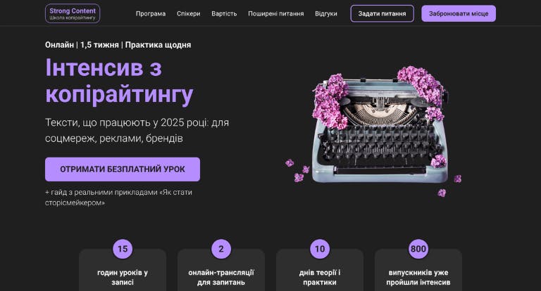 Лендінг для онлайн-інтенсиву з копірайтингу чи онлайн-тренінгу на іншу тему👀 Подивитись шаблон