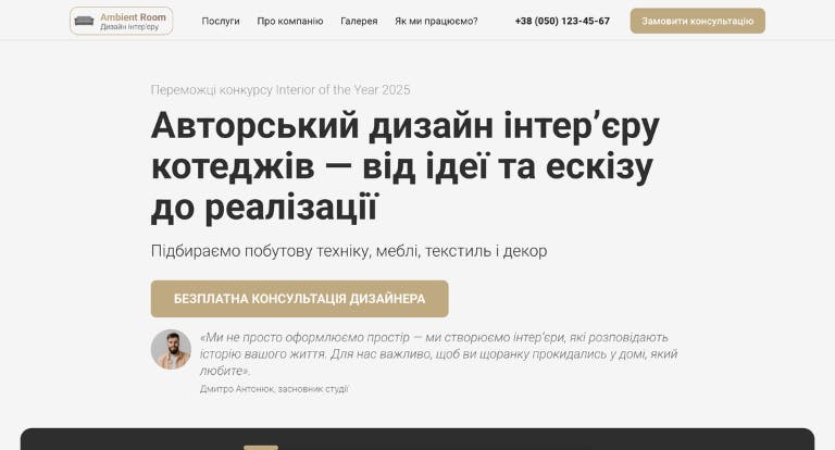 Лендінг для компаній, що займаються дизайном інтер'єру👀 Подивитись шаблон