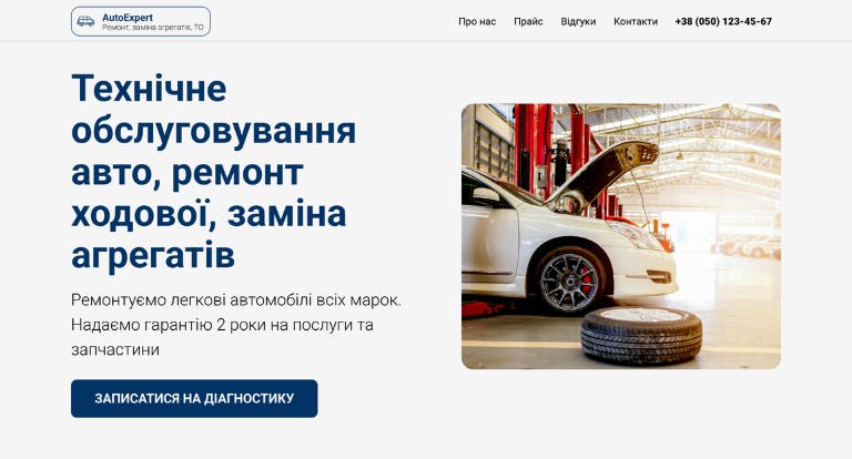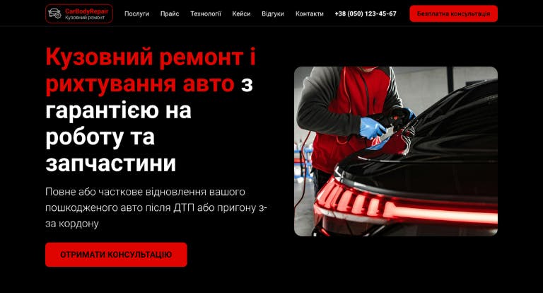 Лендінг для автосервісу кузовного ремонту та рихтуванню авто👀 Подивитись шаблон