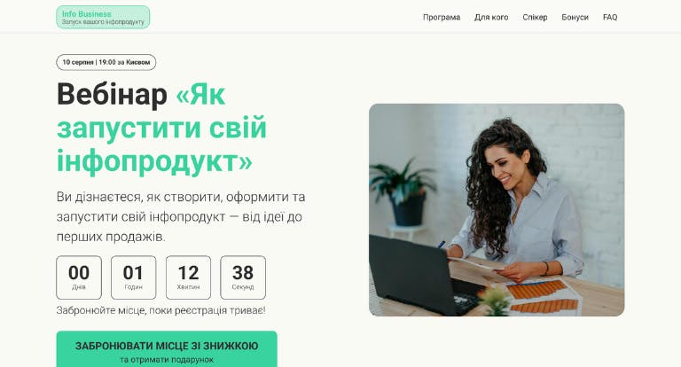 Лендінг для збору заявок на вебінар👀 Подивитись шаблон