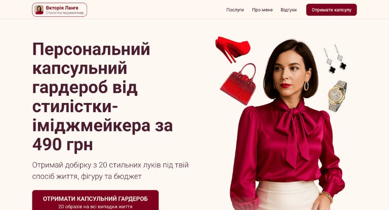 Лендінг для стиліста з міні-продуктом та послугами👀 Подивитись шаблон