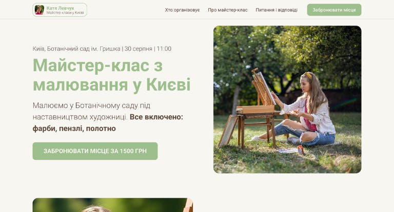 Лендінг для проведення офлайн майстер-класів👀 Подивитись шаблон