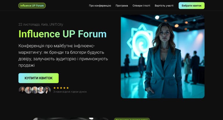 Лендінг для події, конференції: продаж квитків та презентація програми івенту👀 Подивитись шаблон