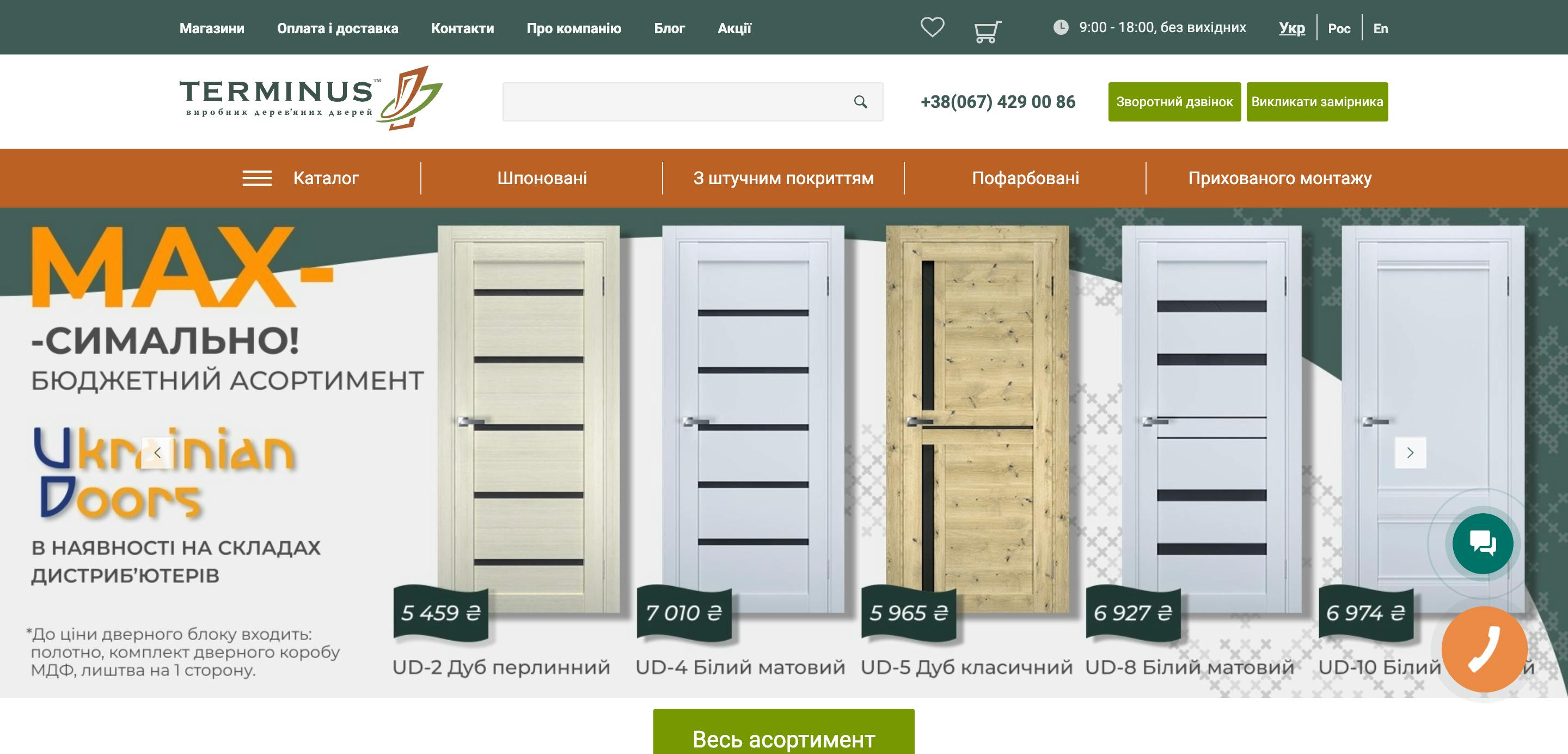 Скріншот головної сторінки сайту Фабрика дверей Термінус