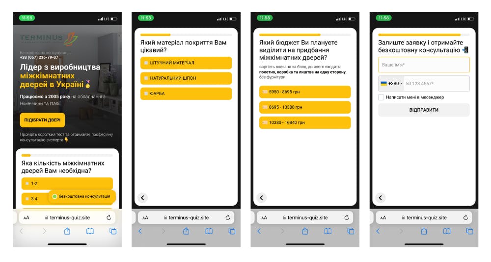 Скрін лендінг-квіза (вигляд в мобільній версії)