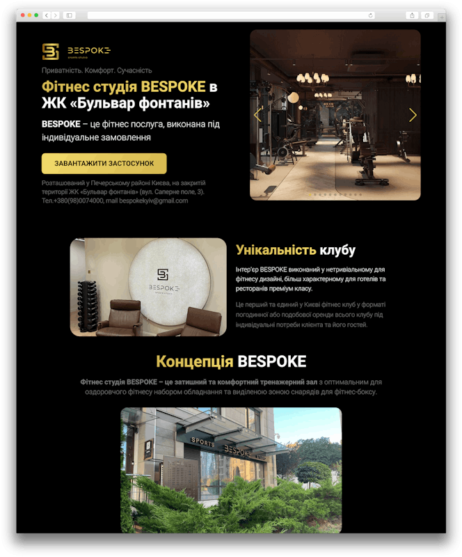 Унікальна фітнес студія Bespoke в ЖК «Бульвар фонтанів» в Києві